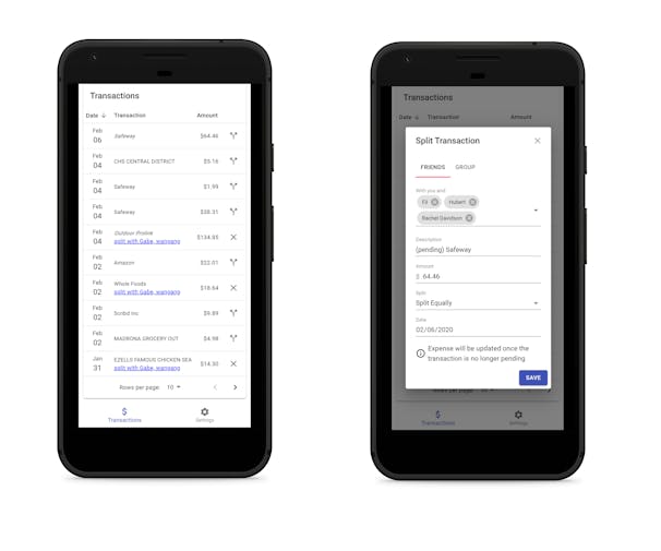 Reconcile uses Plaid to access user's credit card & bank transactions and displays them in a React based web application. The user can then select specific transactions and which friend or group on splitwise to split them with.